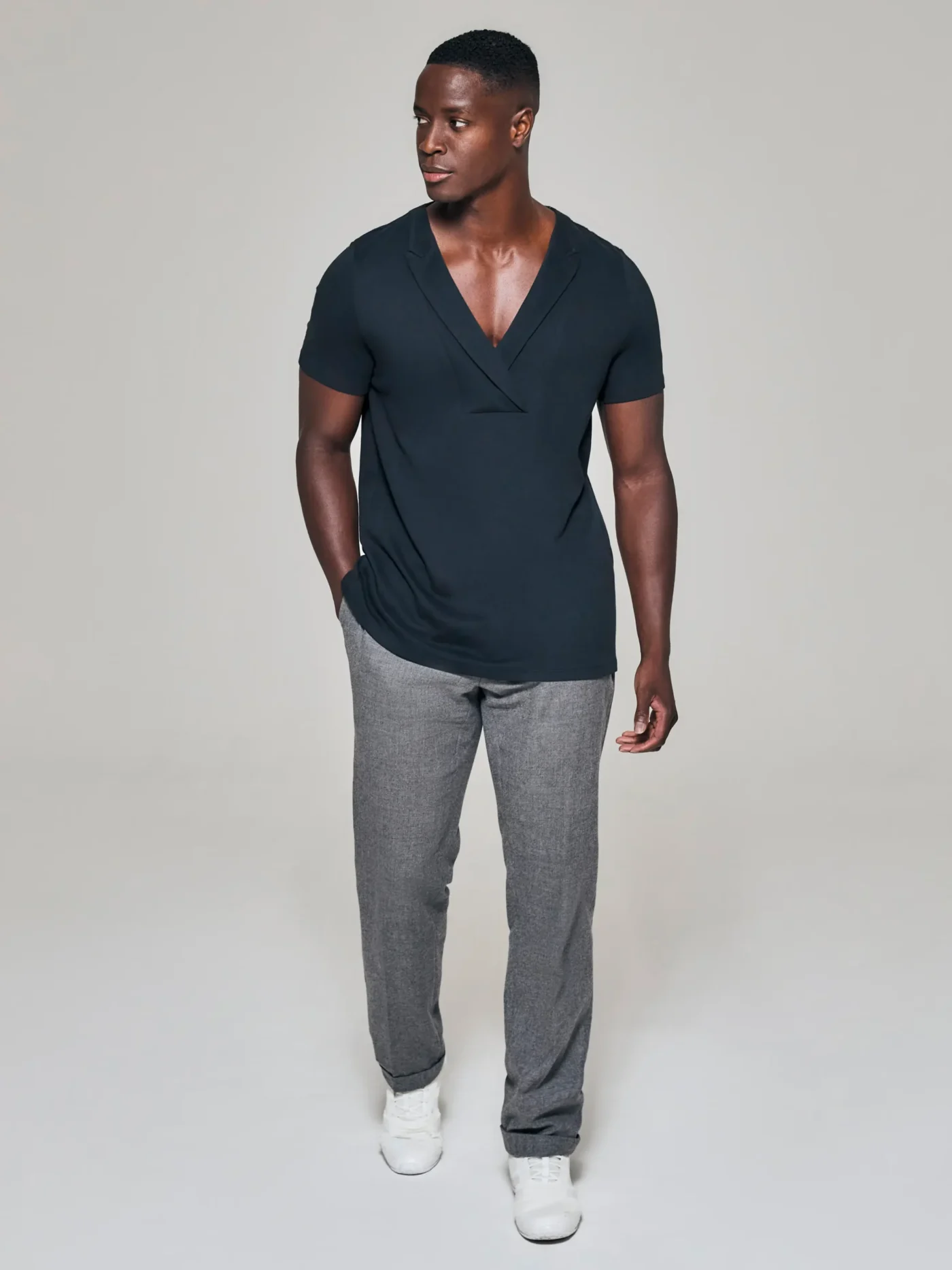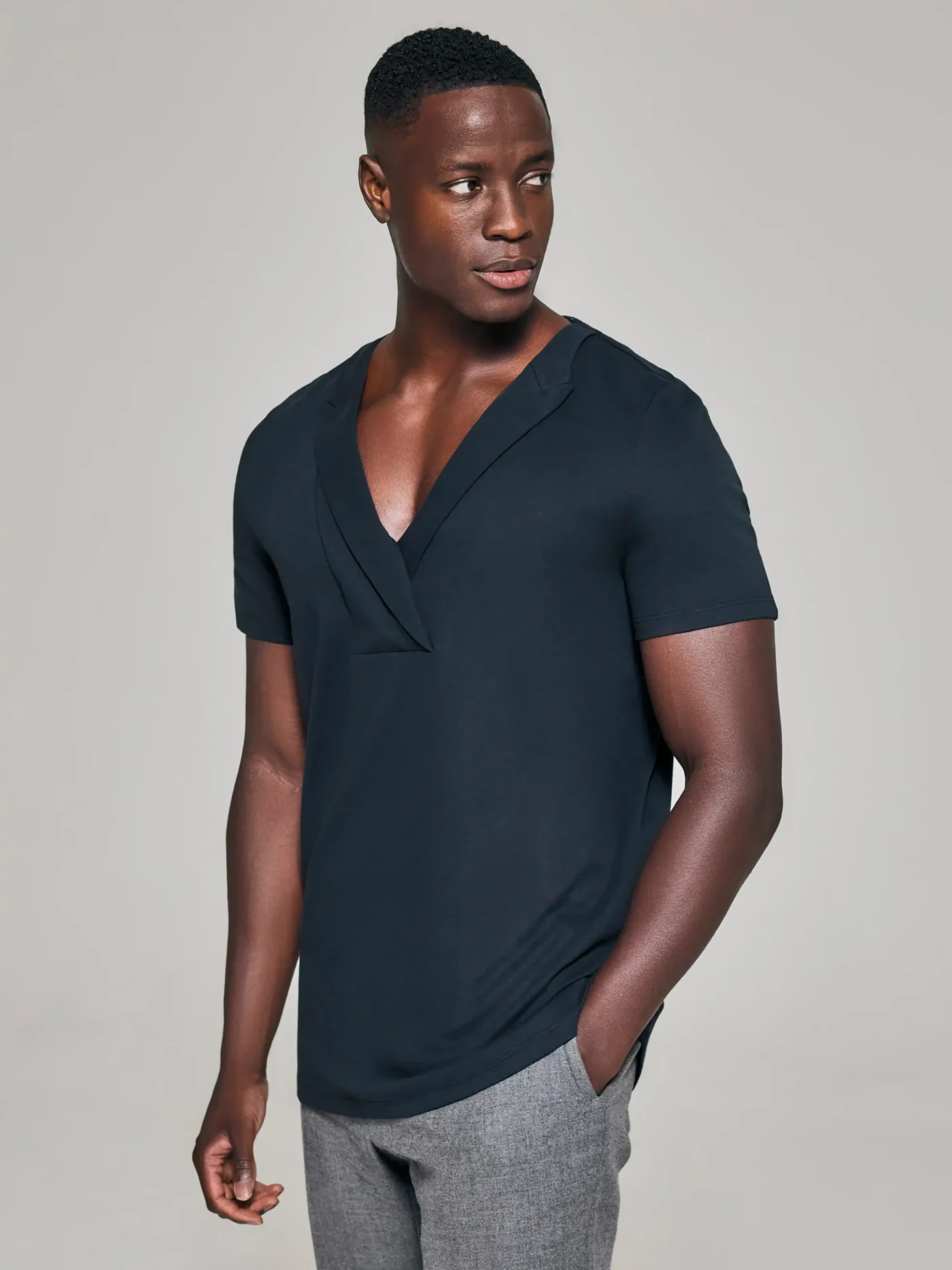 Style No: 0001 | Asymmetric Lapel Bib Cotton T-Shirt